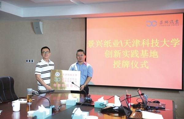 儀式上,劉洪斌向公司授予“創新實踐基地”牌匾,同時聘用徐東、曹海兵、魯賓、程正柏、徐清涼5 人為天津科技大學造紙學院企業導師并頒發聘書。